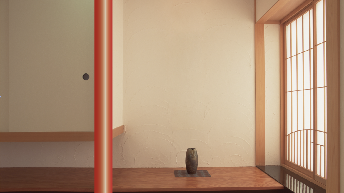真っ赤な漆塗りの柱1本で変化する床の間(イメージ図)
